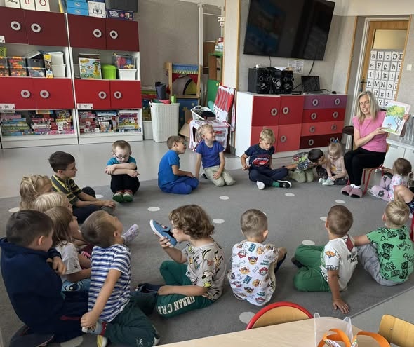 Pdczas trwania Tygodnia Budowania Relacji, odbył się w naszym przedszkolu Ogólnopolski Dzień Głośnego Czytania. W świat emocji wprowadziły dzieci: psycholog Pani Julia Modzelewska, pedagog specjalny Pani Jolanta Łbik, Dyrektor naszego przedszkola Pani Marta Rudy oraz zaproszony gość: Dyrektor Poradni Psychologiczno- Pedagogicznej w Giżycku Pani Bożena Giedziuszewicz. Dzieci z uwagą i zaciekawieniem słuchały czytanych książek, które poruszały tematy emocji, przyjaźni i wartości rodzinnych. Była to doskonała okazja do wspólnego przeżywania literackich historii, a także do rozmów o uczuciach i sposobach ich wyrażania. Dziękujemy wszystkim za piękny przekaz i udział w wydarzeniu, które wzbogaciło codzienne życie przedszkolne i przyczyniło się do budowania atmosfery wzajemnego zrozumienia i serdeczności.