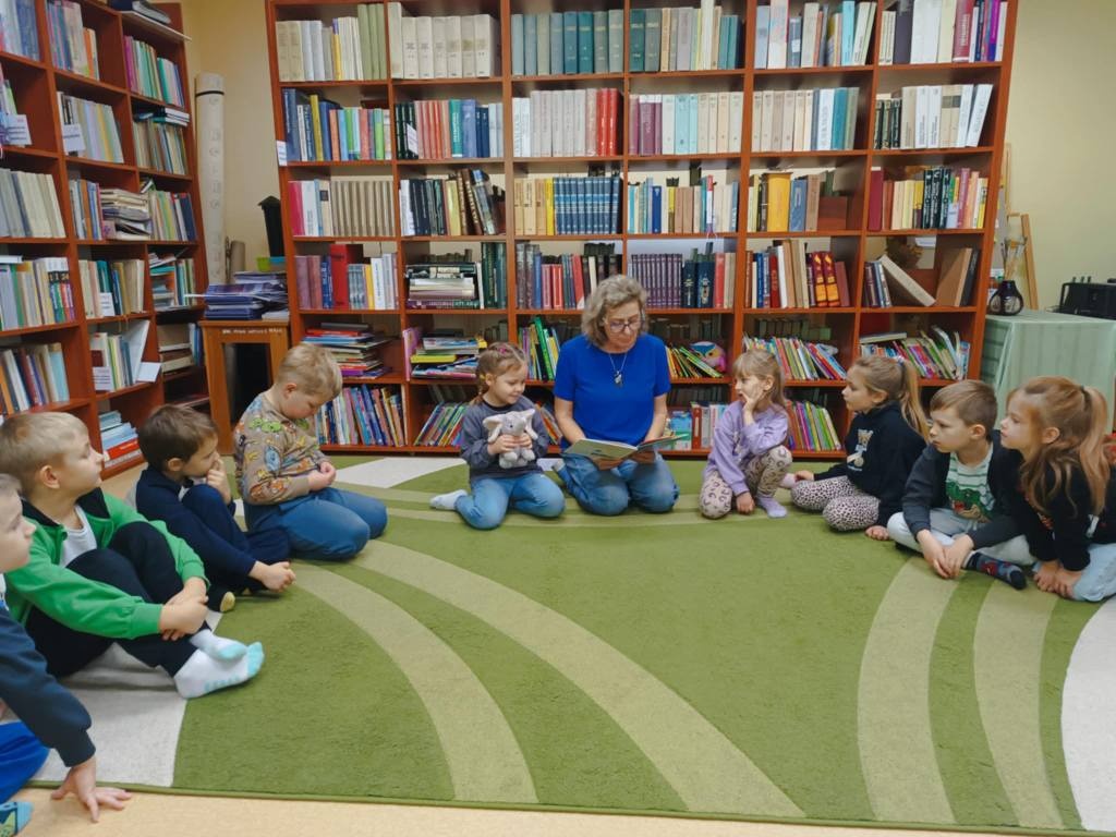 W Bibliotece Pedagogicznej odbył się cykl spotkań edukacyjno-wychowawczych dla dzieci ze wszystkich grup zorganizowanych pod hasłem „Nie czyń drugiemu, co Tobie niemiłe”. Głównym celem spotkań w bibliotece było uwrażliwienie najmłodszych na potrzebę szacunku wobec innych, rozwijanie empatii oraz promowanie pozytywnych zachowań społecznych poprzez literaturę dziecięcą i zabawę.
