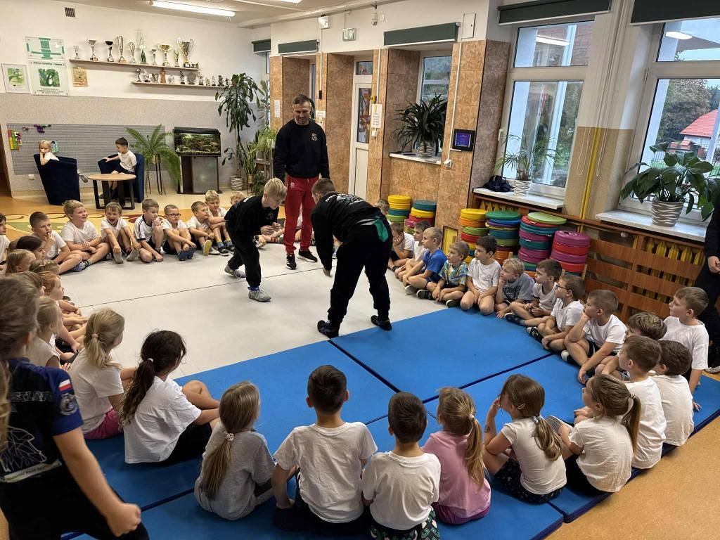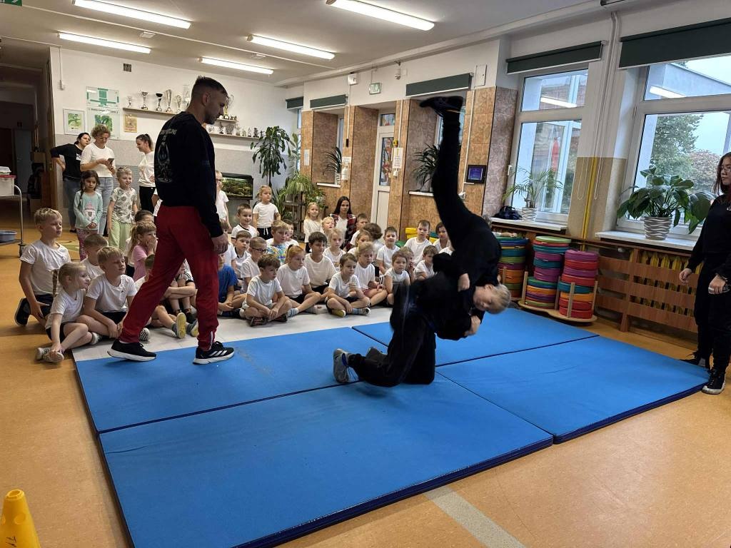 z prawidłowym wykonaniem ćwiczenia.Opracowana innowacja stanowi jedną z dróg poszukiwania nowych rozwiązań metodycznych w pracy z dziećmi w wieku przedszkolnym poprzez „przygodę z ruchem”. Naszą przygodę rozpoczniemy od wprowadzenia zajęć z chwytanych sportów walki, ćwiczeń siłowych, mocowania, ćwiczeń ogólnorozwojowych z elementami akrobatyki. Zabawy ruchowe rozwijają pamięć i wyobraźnię twórczą, kształtują osobowość dziecka i takie cechy charakteru jak: samodzielność, zdyscyplinowanie, dokładność, uczą współpracy w zespole, rozwijają społecznie. Idąc za potrzebą ruchu i mając świadomość ile pozytywnych odczuć daje dzieciom aktywne spędzanie czasu grupa zostanie zaangażowana również do udziału w ploggingu ekologicznym i w projekcie „NinjaParkour” na terenie miasta Giżycka. Postawa reprezentatywna podniesie samoocenę dziecka, wyzwoli pozytywne emocje.